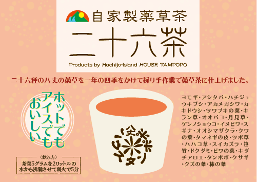 今年もできあがりました! 26種類の八丈の薬草を一年かけて完全手摘み、完全手作りの自家製薬草茶です。 大変ご好評頂いているのですが全て手作業の為、数に限りがあって残念ながら非売品です。 お泊り頂いた女性の方にプレゼントしています。